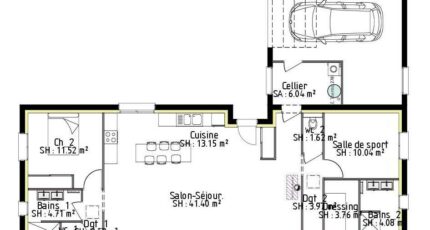 Ce plan est très fonctionnel et allie esthétique, modernité avec une ligne évolutive pour cette maison de plain-pied.