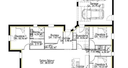 Plan maison 7 pièces 3 chambres Surface maison 103 m2