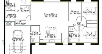 Plan maison 5 pièces 3 chambres Surface maison 109 m2