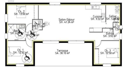 Ce plan est très fonctionnel et allie esthétique, modernité avec une accessibilité pour les personnes à mobilité réduite.