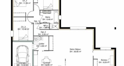 Plan maison 7 pièces 3 chambres Surface maison 113 m2