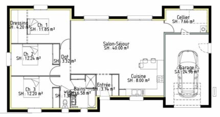 Plan maison 5 pièces 3 chambres Surface maison 115 m2