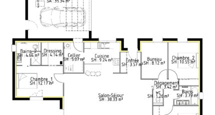 Plan maison 5 pièces 3 chambres Surface maison 115 m2