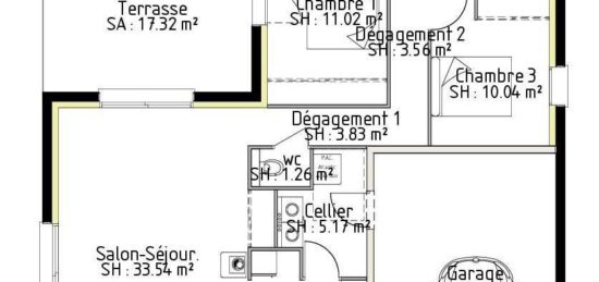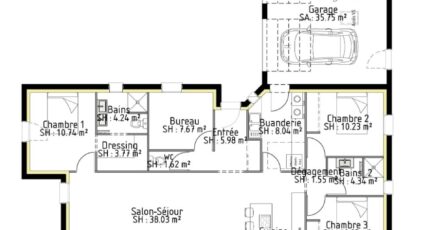 Plan maison 5 pièces 3 chambres Surface maison 117 m2