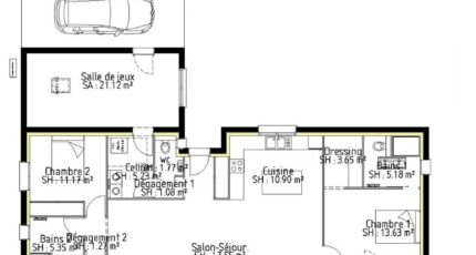 Une pièce supplémentaire (ici la salle de jeux) est accolé à la partie habitable qui peut être transformé en garage.