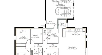 Plan maison 7 pièces 4 chambres Surface maison 124 m2