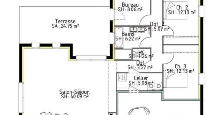 Plan maison 6 pièces 4 chambres Surface maison 129 m2