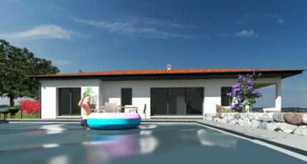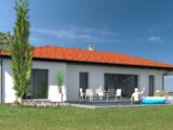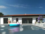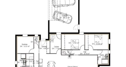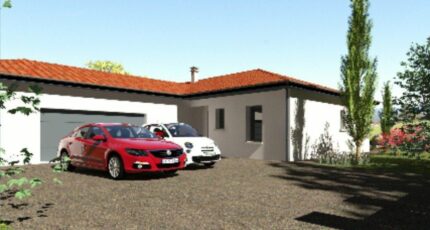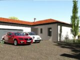 Maison plain-pied en forme de L avec 131m² habitable, et un garage accolé de 50m² pour 2 véhicules.