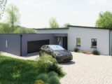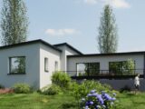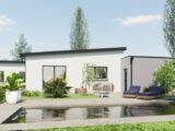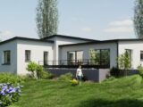 Cette maison de plain-pied se démarque de par sa forme moderne et épurée.