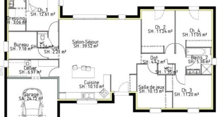Plan maison 7 pièces 5 chambres Surface maison 146 m2