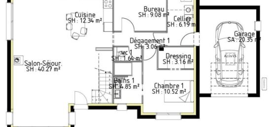 Cette maison sur sous-sol se démarque par sa forme en Y avec l'espace vie au centre, 2 espaces nuit de chaque coté et un abri ouvert pouvant y accueillir deux véhicules, connecté à la maison part la buanderie.