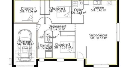 Plain-pied de 87 m² habitable composé d'un espace salon séjour de 31m² et d'une cuisine ouverte de 8m² avec un cellier attenant de 4,67m².