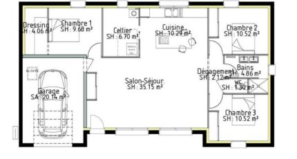 Plan maison 5 pièces 3 chambres Surface maison 95 m2