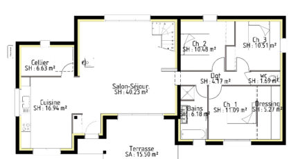 Plan maison 6 pièces 5 chambres Surface maison 133 m2