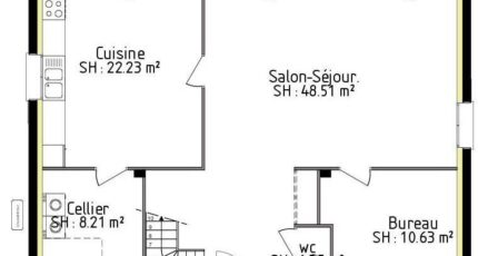 Cette maison d'une surface habitable de 176 m² est une architecture aux aspects élégants. Le rez-de-chaussée découvre un espace jour de 48 m² avec cuisine fermé de 22m² , d'un cellier de 8m² et d'un bureau de 10m² qui peut-être transformé en chambre.