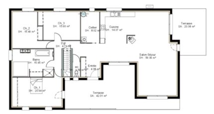 Plan maison 6 pièces 3 chambres Surface maison 159 m2