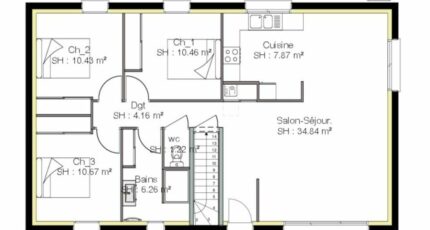 Plan maison 5 pièces 3 chambres Surface maison 88 m2